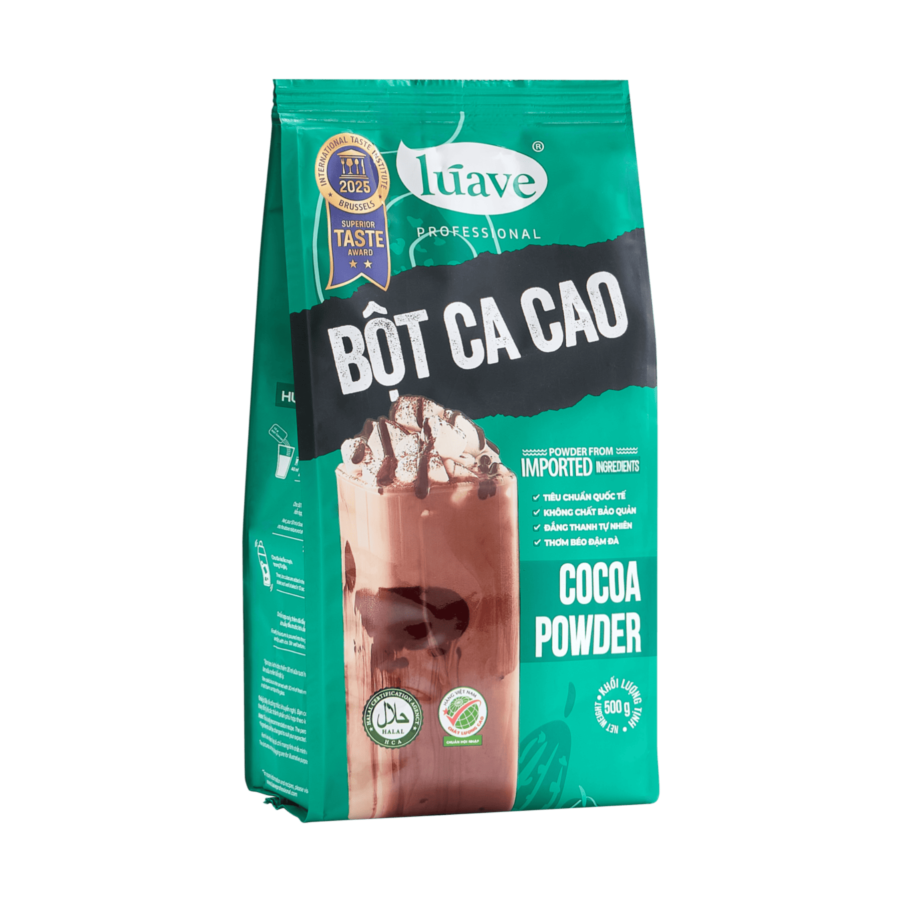 Bột Ca cao Lúave® là sản phẩm chất lượng cao, đạt tiêu chuẩn quốc tế, mang đến sự an tâm  tuyệt đối cho người tiêu dùng. Sản phẩm không chứa chất bảo quản, giữ trọn hương vị  đắng thanh tự nhiên đặc trưng của ca cao, kết hợp cùng vị thơm béo đậm đà. Bột Ca cao Lúave® đa dụng và tiện lợi, phù hợp cho cả pha chế đồ uống, làm bánh và nấu ăn, giúp bạn dễ dàng sáng tạo ra những món ngon hấp dẫn với nguyên liệu an toàn, giúp nâng tầm  trải nghiệm ẩm thực của bạn.