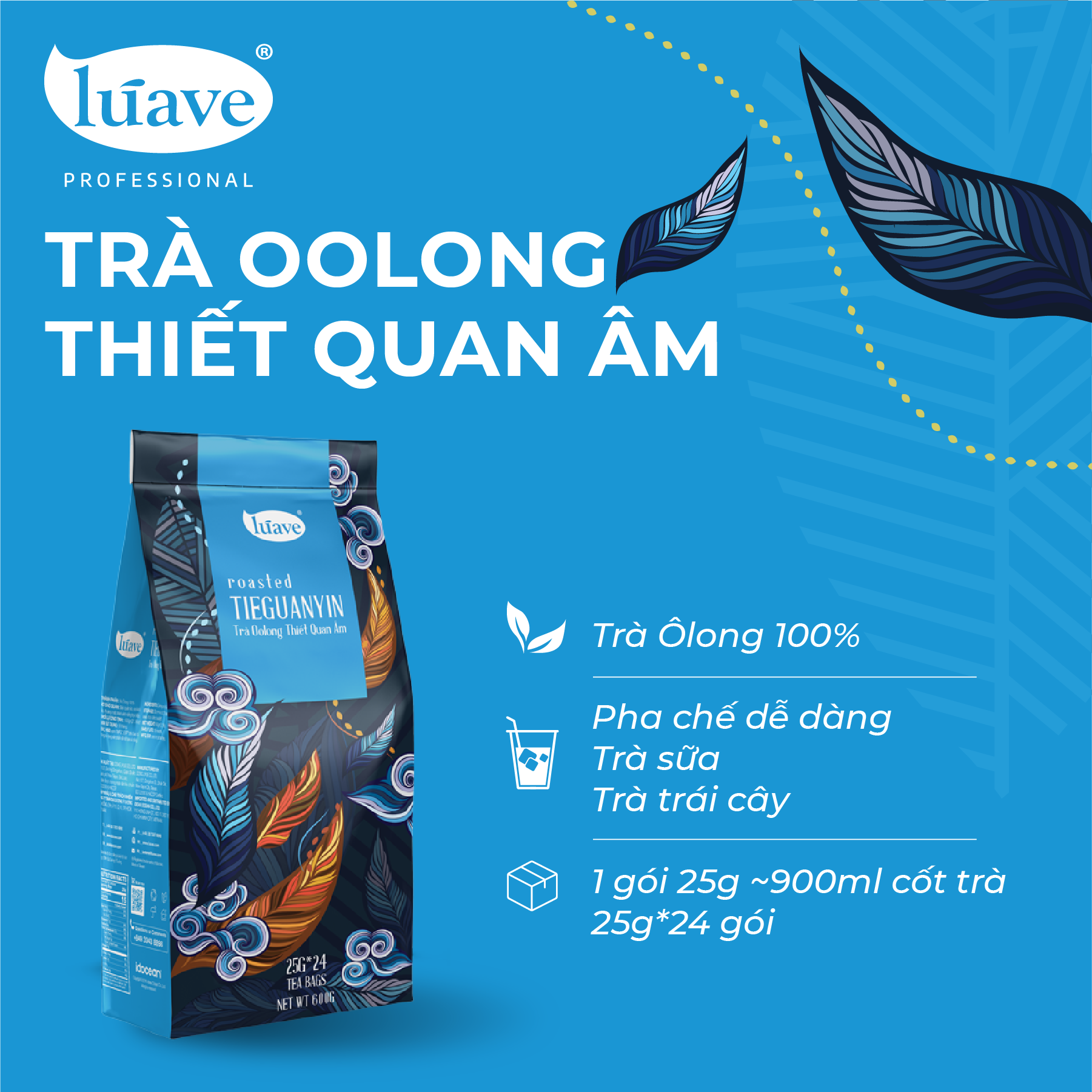 Trà Ôlong Thiết Quan Âm (Roasted Tieguanyin) Lúave – 25g x 24 túi. Ngoài hãm trà để uống thông thường, trà Thiết Quan Âm (Roasted Tieguanyin) còn được ứng dụng rộng rãi để chế biến các loại trà sữa cao cấp. Với túi lọc lớn 25g, Trà Ôlong Thiết Quan Âm Lúave phù hợp để pha chế số lượng lớn.